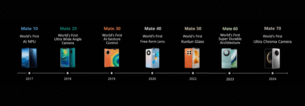 The HUAWEI Mate 30 came with the world’s first AI Gesture Control capability, which allowed users to navigate through the phone without touching it, while the HUAWEI Mate 40 redefined smartphone photography with world’s first Free-Form Lens, minimizing distortion while preserving true-to-life proportions. In 2022, the HUAWEI Mate 50 pushed the possibilities of the mobile experience even further by becoming the world’s first satellite communication smartphone protected by the remarkably tough Kunlun Glass.