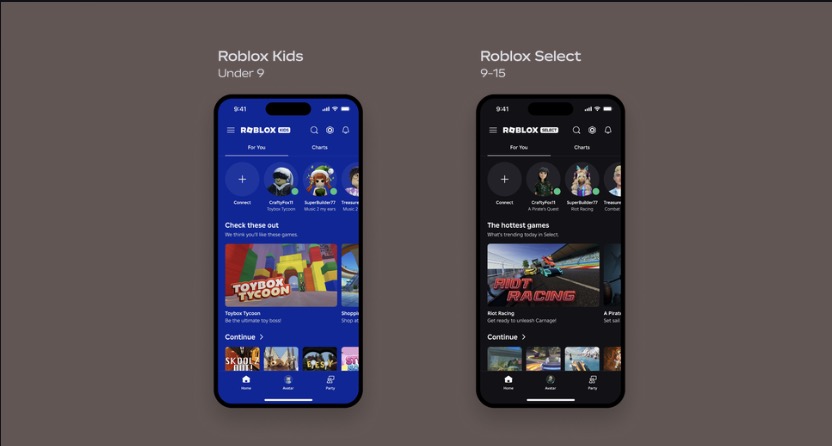 Roblox Kids and Roblox Select accounts to provide age-based content access and communication defaults for younger users