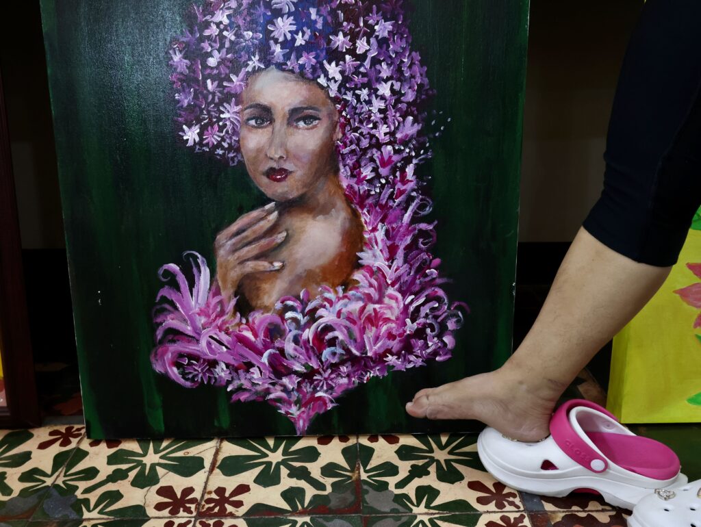 Her journey was shaped by inspiration from a fellow artist-in-residence, Angie—who paints using her feet.