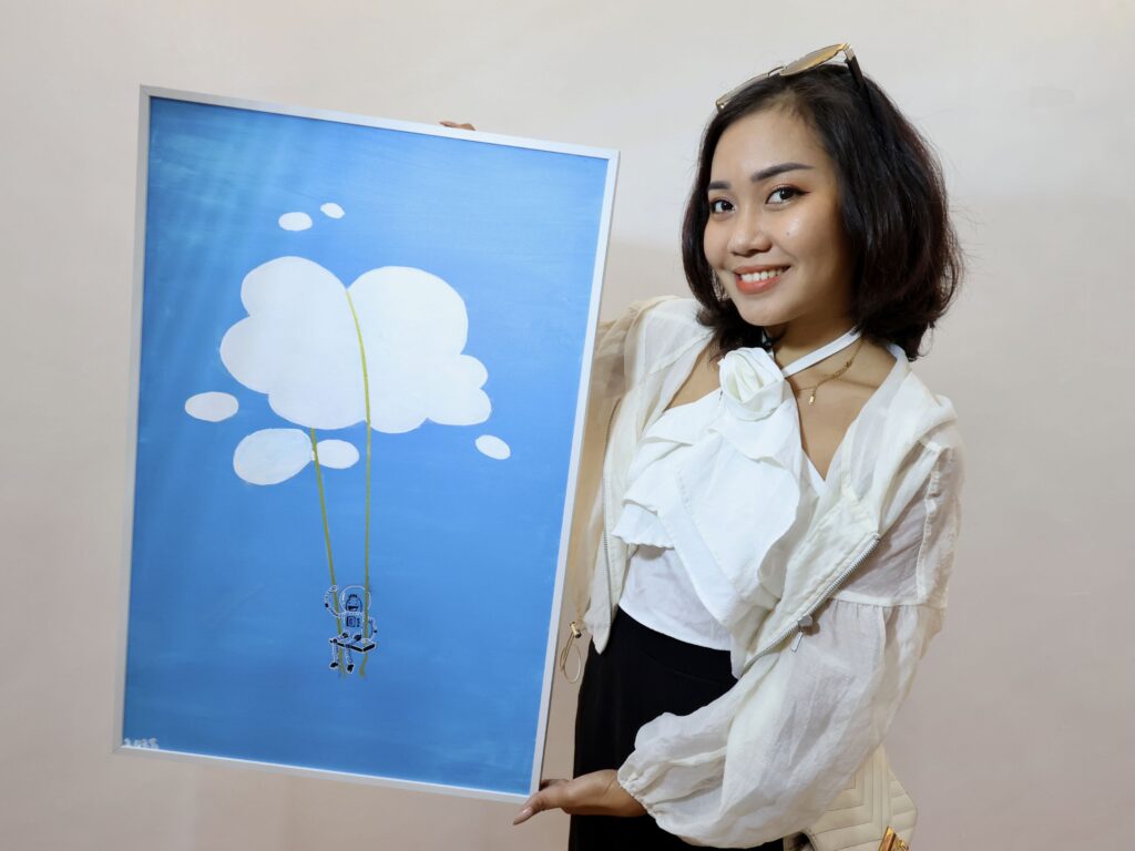 “Bigla na lang po pumasok sa isip ko… gusto ko mapuntahan yung mga lugar na ‘yon,” she shared, explaining how her dream destinations inspired her to paint landscapes she hopes one day to see in real life.