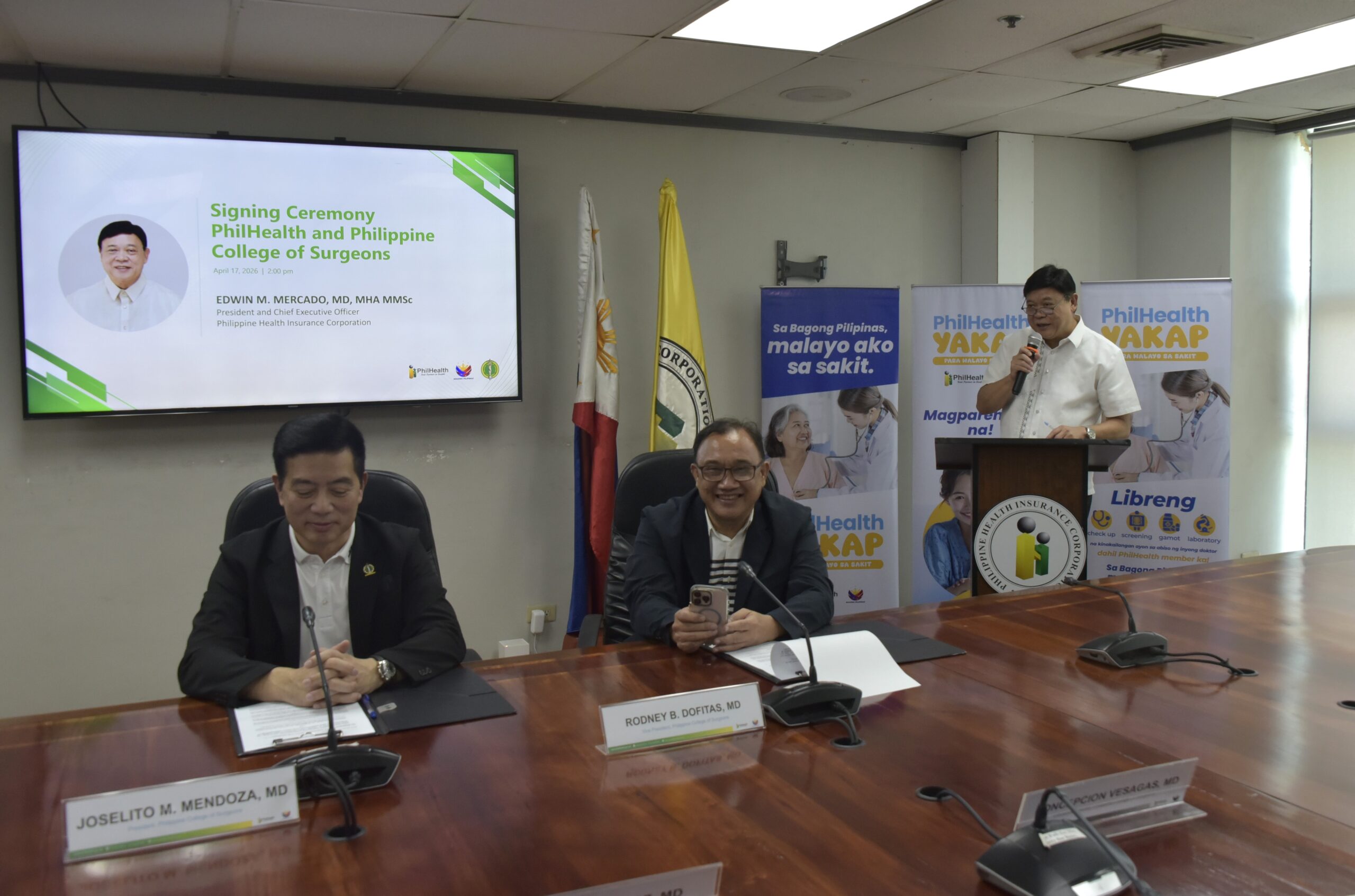 Under the agreement, PhilHealth and PCS will jointly develop surgical benefit packages, referral networks, and quality standards, supported by research and geographic mapping of surgical services across the country.