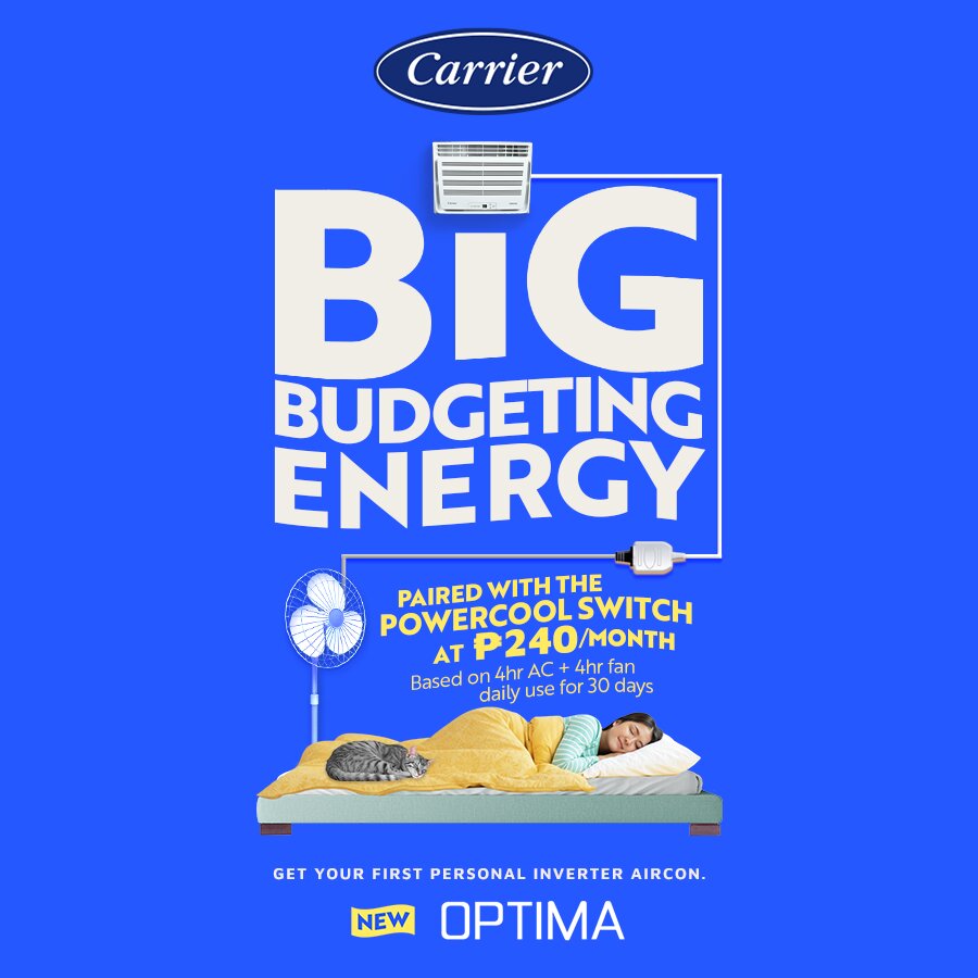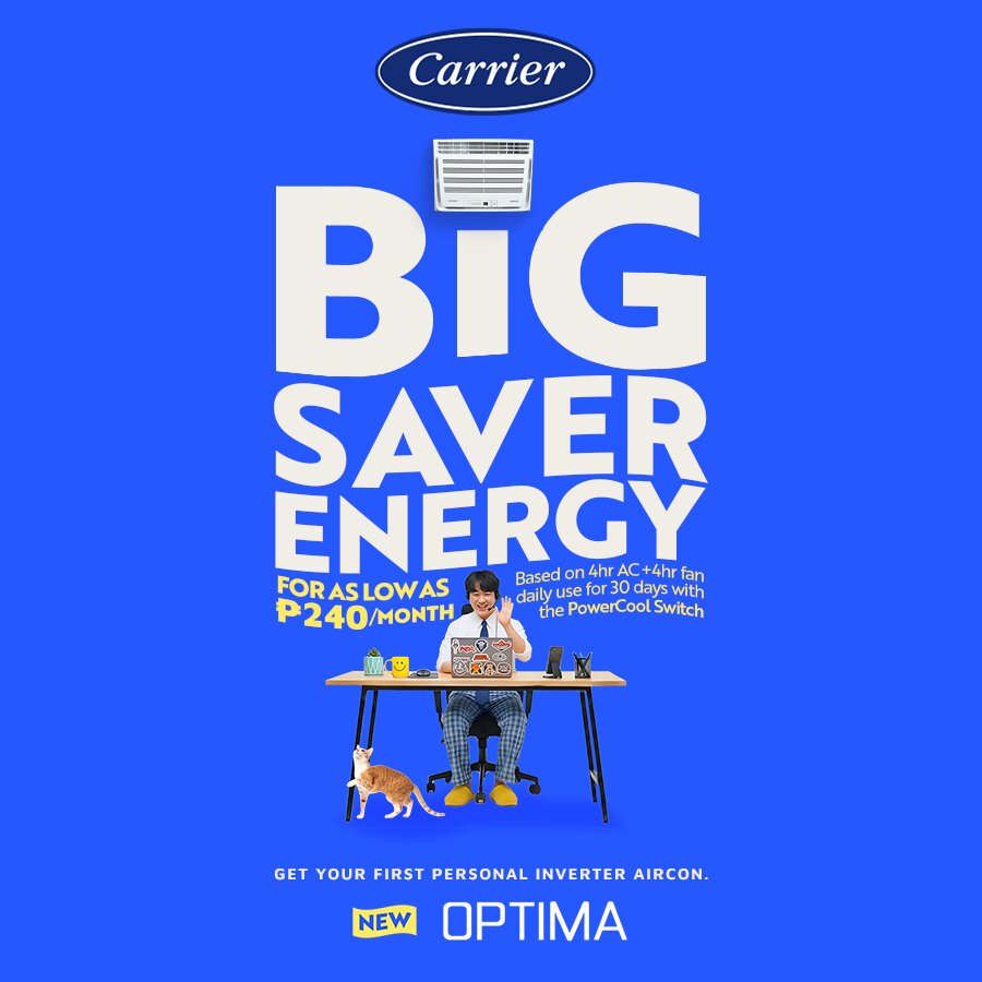 If you’ve been putting off buying your first air conditioner because of the fear of an increase in your electric bill, Carrier Optima Window is built to make that first step easier and less scary. Make the smart first move today with the Carrier Optima Window 0.5HP, available for only PHP 12,995 SRP at ConcepStore.com, Carrier Air Authority Centers, and leading appliance stores nationwide. And if your space needs different types of units, the Carrier Optima line also has split-type units, floor-standing options for bigger rooms, and cassette types for a more seamless ceiling install. To learn more, visit this link.