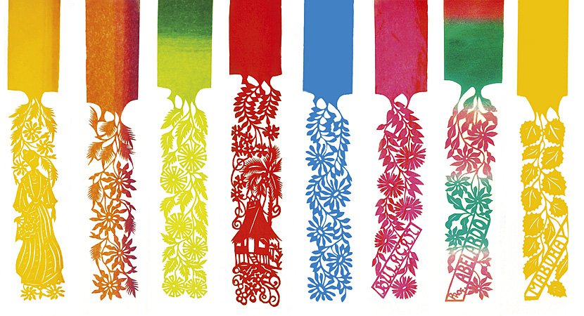 Pabalat artist Luz Mendoza Ocampo uses patterns she personally designed, such as the so-called Maria Clara motif, tinikling, pounding rice grains, nipa hut, birds, and various flowers. She traces the pattern into layers of papel de hapon using a pencil, and then cuts the paper using a cuticle scissor.